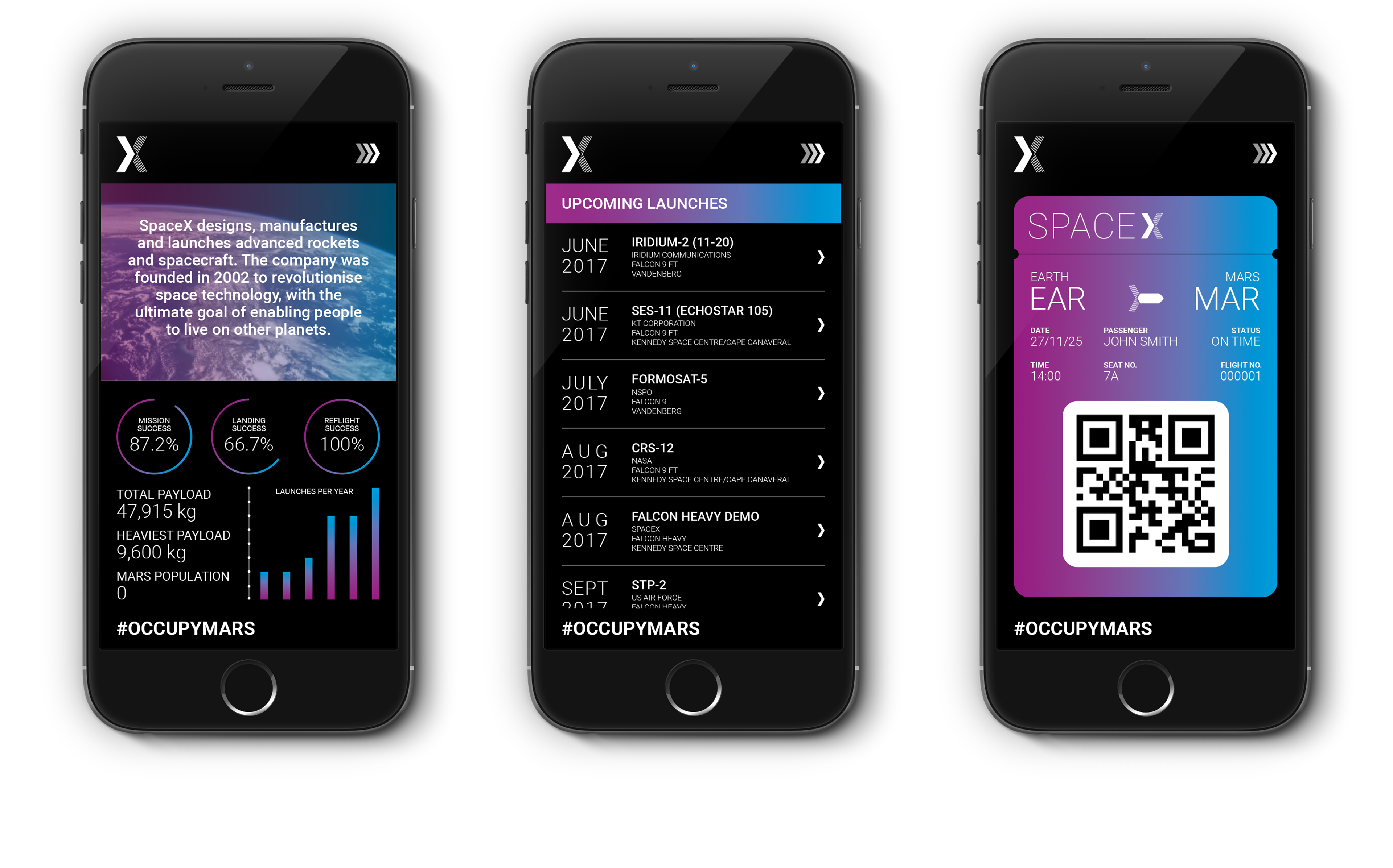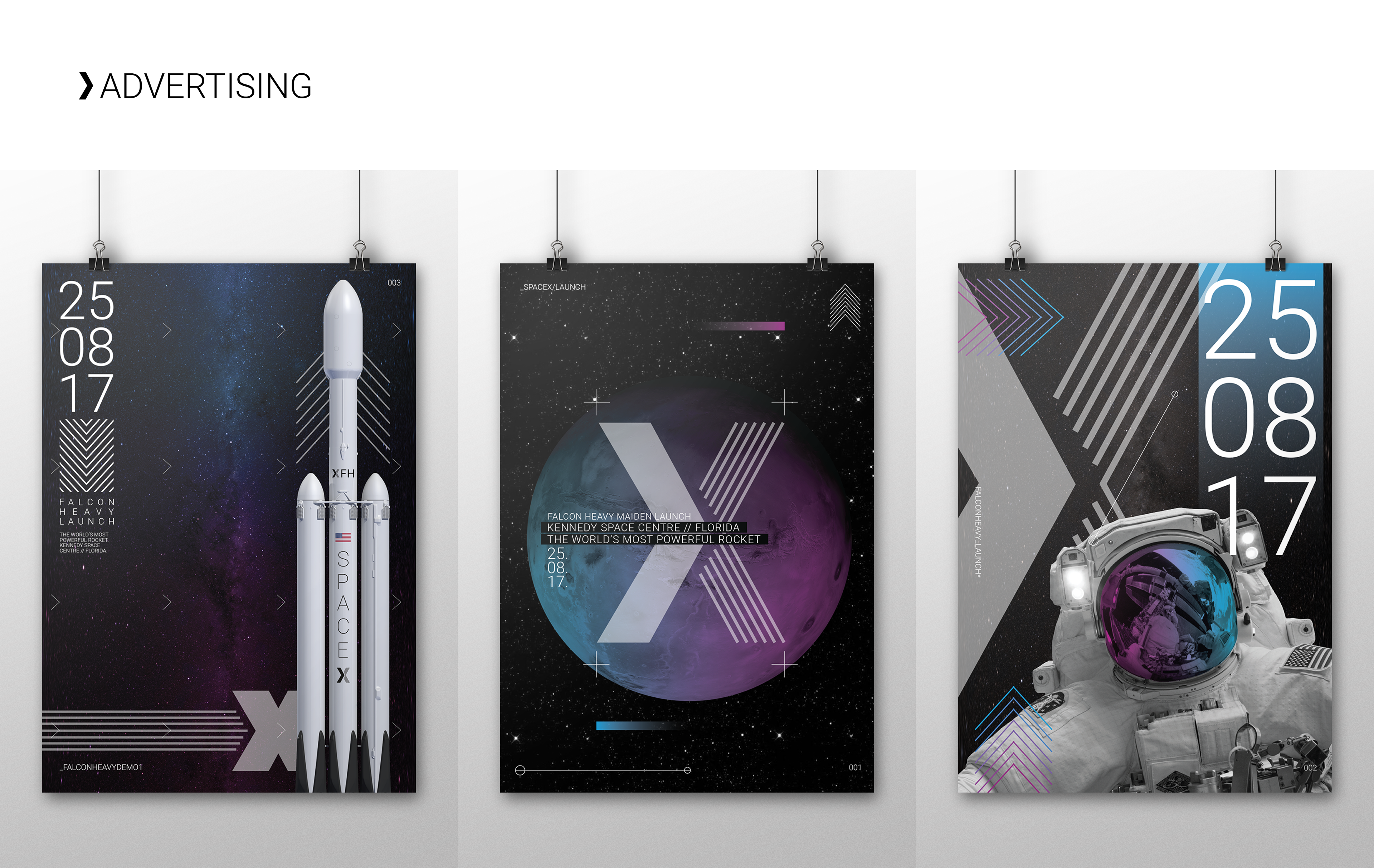 I was tasked with rebranding SpaceX in my final year of university. SpaceX designs, manufactures and launches advanced rockets and spacecraft. The company was founded in 2002 to revolutionize space technology, with the ultimate goal of enabling people to live on other planets. I wanted to modernise the brand and convey their forward-thinking, out-of-this-world mentality.